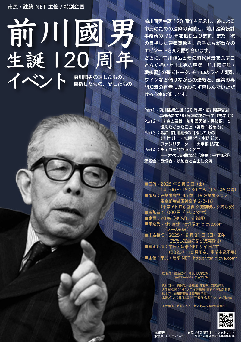 「「未完の建築」――前川國男と鬼頭梓の求めたもの」(松隈洋) 2025年5月10日 東北大学日本学国際共同大学院「シンポジウム 宮城県美術館、都市景観の未来、そして前川國男の遺産『未完の建築』出版を記念して」 https://www.youtube.com/watch?v=1dNCactQdAA