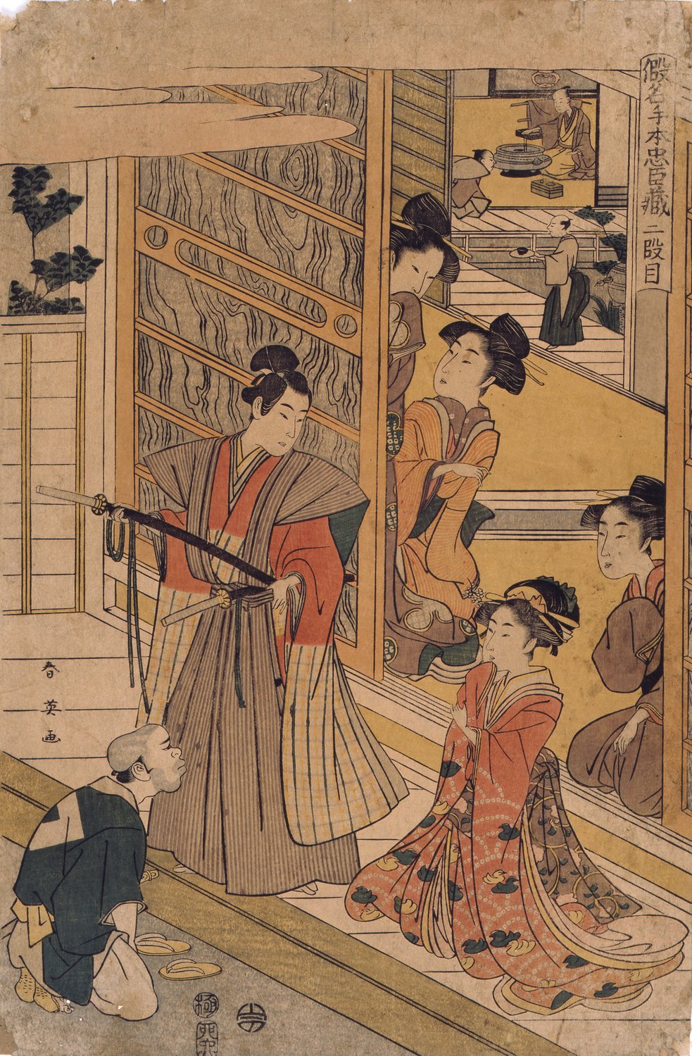 勝川春英「仮名手本忠臣蔵・二段目」江戸時代・文化4年(1807)。東京国立博物館蔵。出典:国立文化財機構所蔵品統合検索システム(https://colbase.nich.go.jp/collection_items/tnm/A-10569-4149?locale=ja)